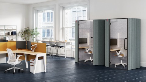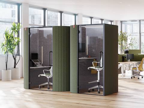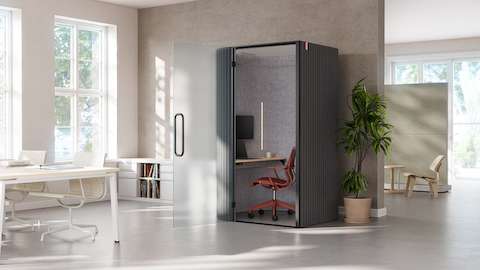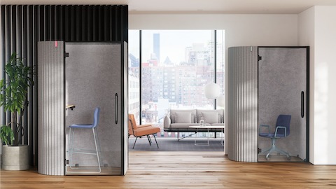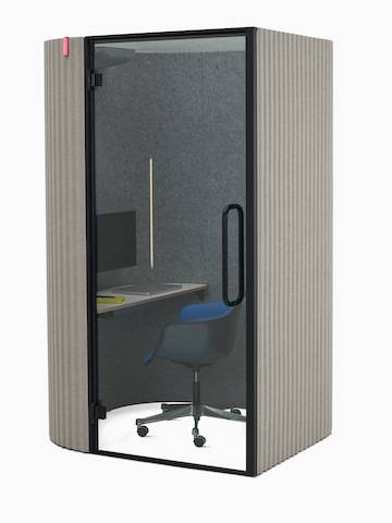 Stepping into a Bay Work Pod should feel like you hit pause on the commotion from a busy office. It provides a short-term focus space for users, giving a chance to be present for heads-down work or calls. Bay Work Pod's rounded corners and corrugated fabric exterior are a stark contrast to most office booths, and the appealing aesthetic also cuts down on noise pollution—both inside and outside the pod. An optional occupancy indicator and frosted glass options ensure that those looking to concentrate don't become a distraction themselves.
